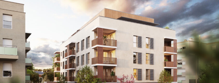 Situated in the revitalized Terraillon district in northern Bron, Oxygène offers an intimate, human-scale residence of just 28 apartments, with layouts ranging from two to four bedrooms and featuring private gardens, spacious loggias, terraces, and even rooftop terraces for the top-floor units.